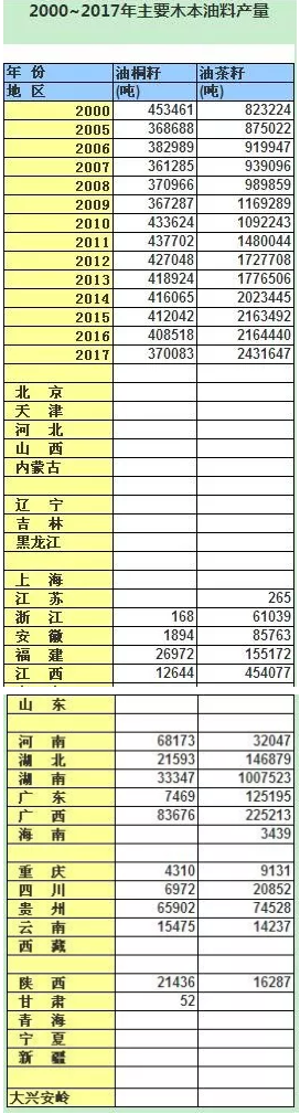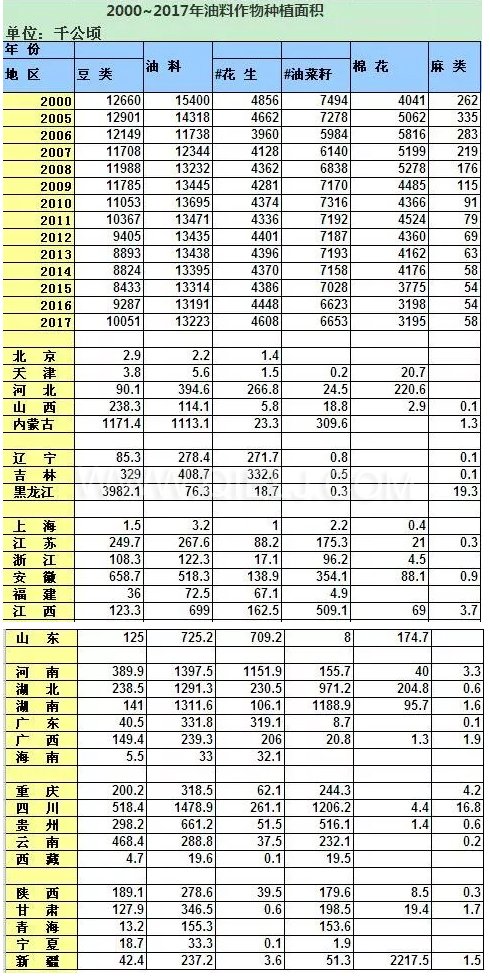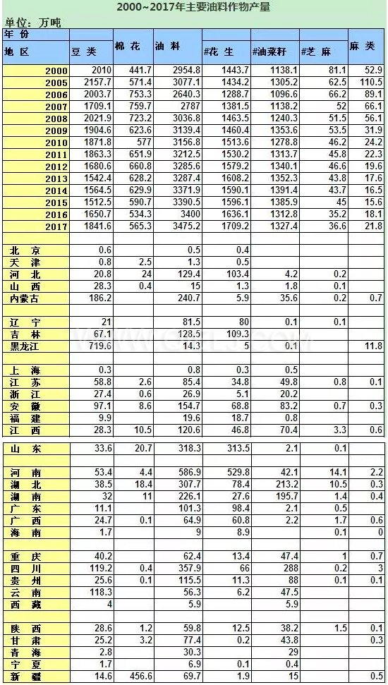 權威發布!2000年~2017年油料作物產量信息匯總表(含具體地區)